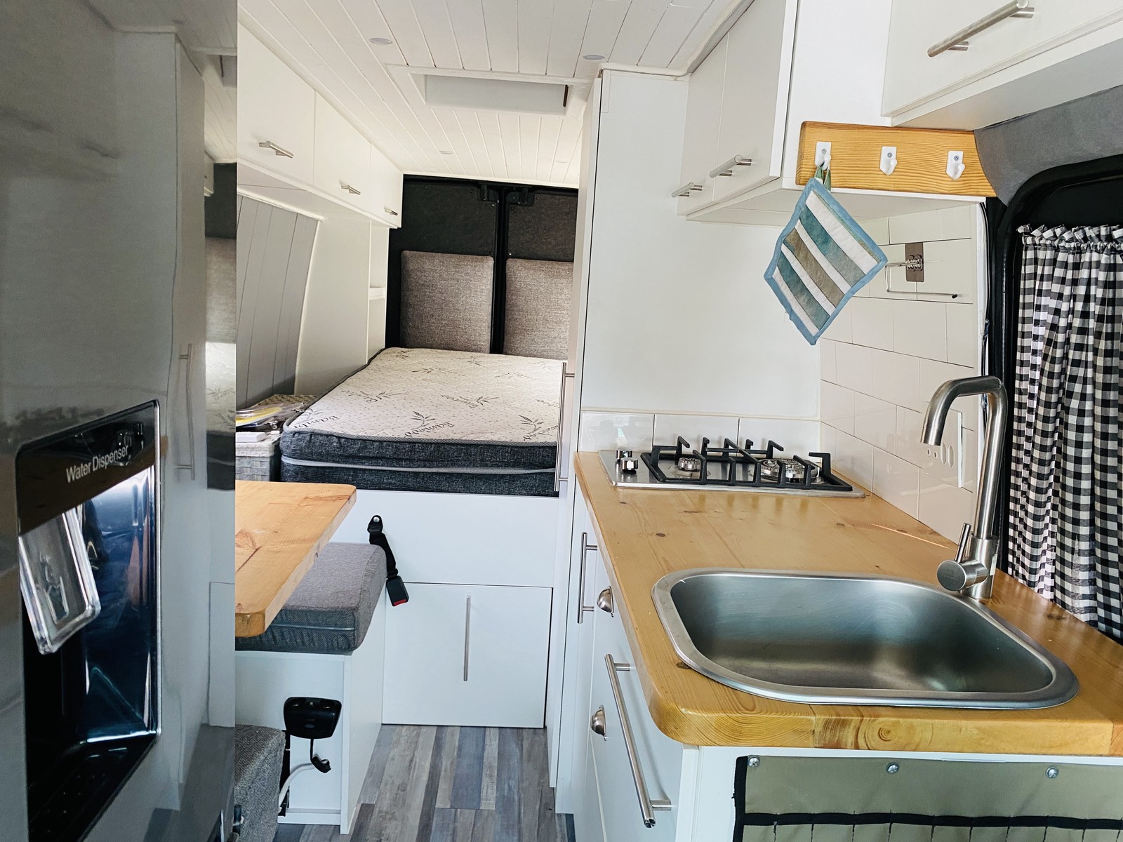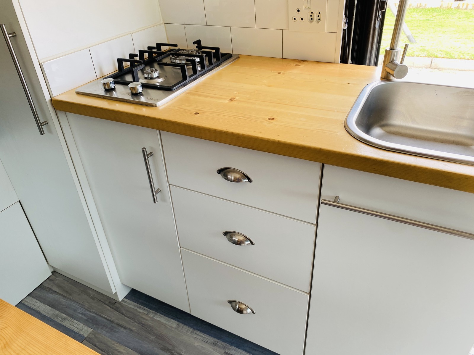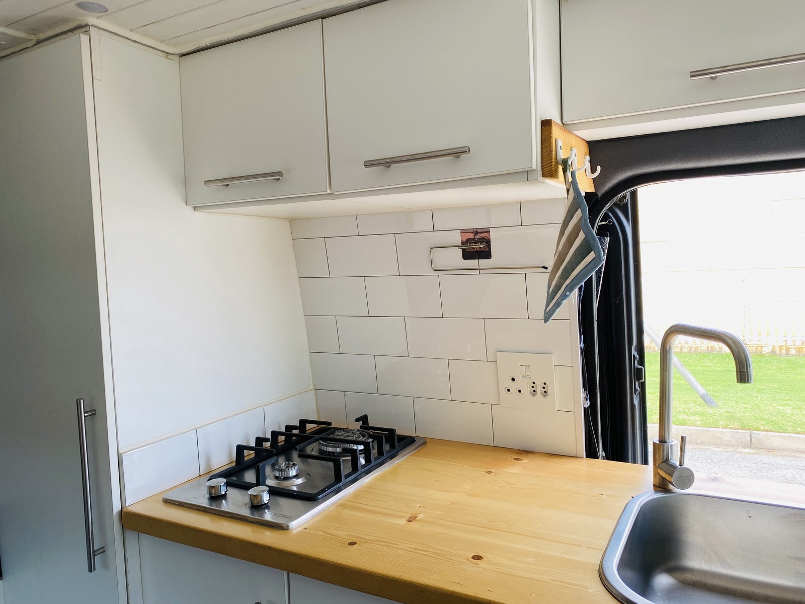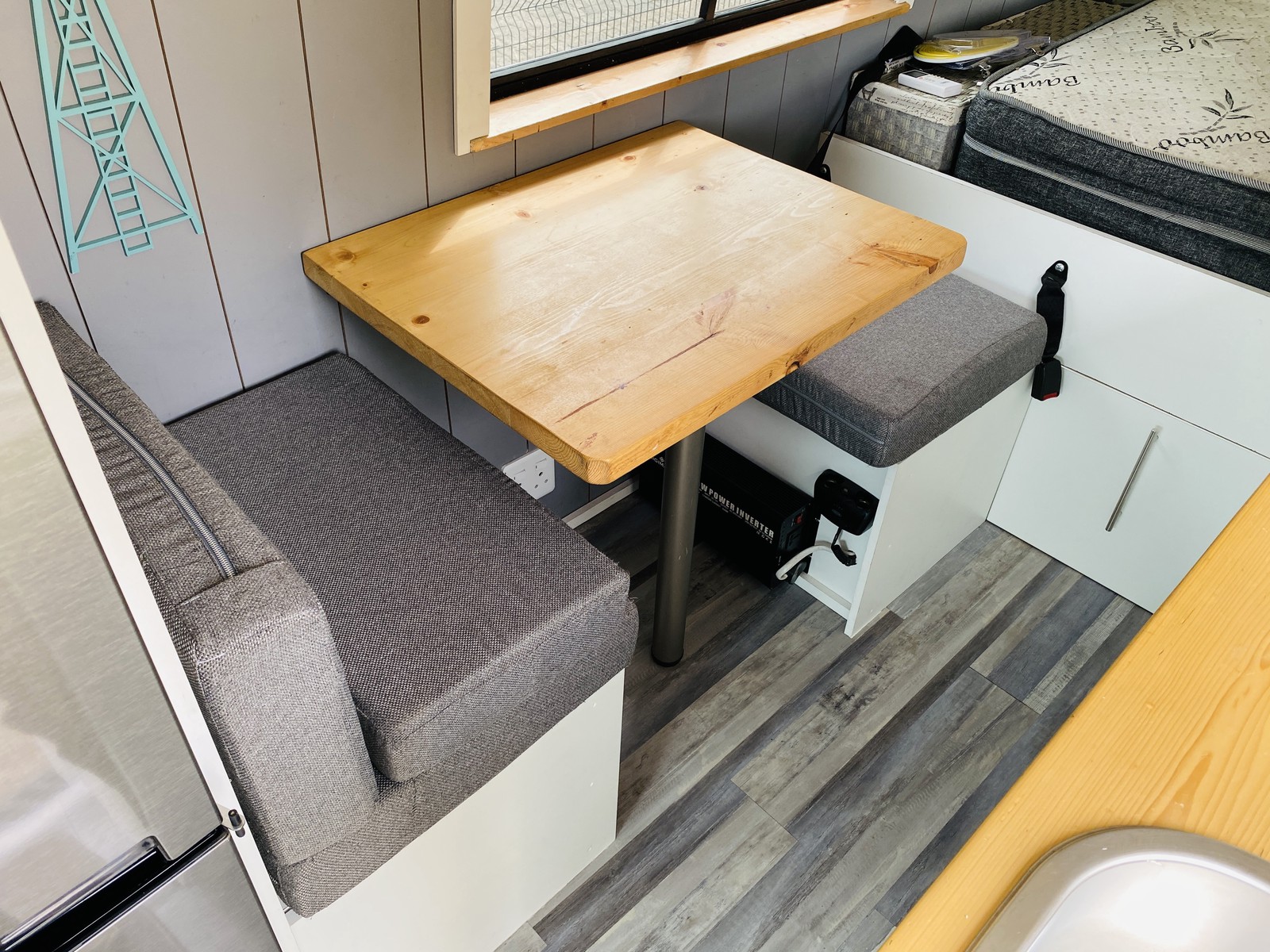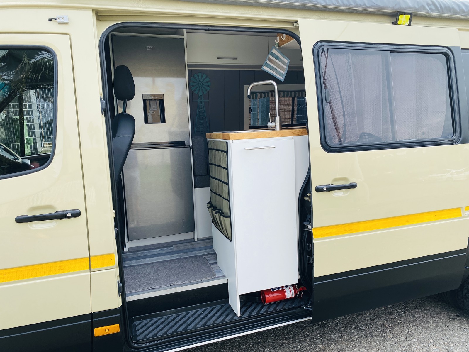 The living space is fully functional with a two-plate gas hob, wash basin, and a Defy fridge freezer with water dispenser – bringing true home convenience wherever you park. A 3000W power inverter, LP gas bottle, power cables and storm ropes mean you’re set up for both campsite stays and off-grid adventures.