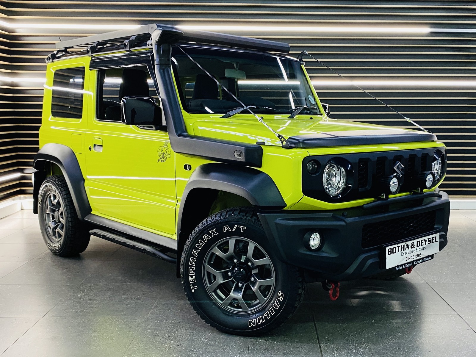 Adventure-ready and built to stand out — this JIMNY 1.5 GLX A/T is fully kitted for serious off-road action while keeping comfort and style locked in. Loaded with premium Des Sol upgrades including roof rack, ladder and rock sliders, plus front and rear recovery points and a snorkel to take on any terrain with confidence. Hella spotlights with light bar ensure visibility when it matters most, while bush deflectors, bonnet guard, eyelids and smoked indicators give it a bold, aggressive edge. Inside, it’s just as impressive with upgraded sound, Apple CarPlay, touchscreen infotainment, reverse camera, cruise control and auto climate control for everyday comfort. Finished with Takla seat covers, dash cover, boot tray and smart storage touches, this is a no-compromise lifestyle 4x4. Backed by a partial service record and a warranty plan valid to 200 000km or 2027/04/28, giving you added peace of mind. Fully equipped, highly desirable and ready to go — don’t wait, secure it before it’s gone.
