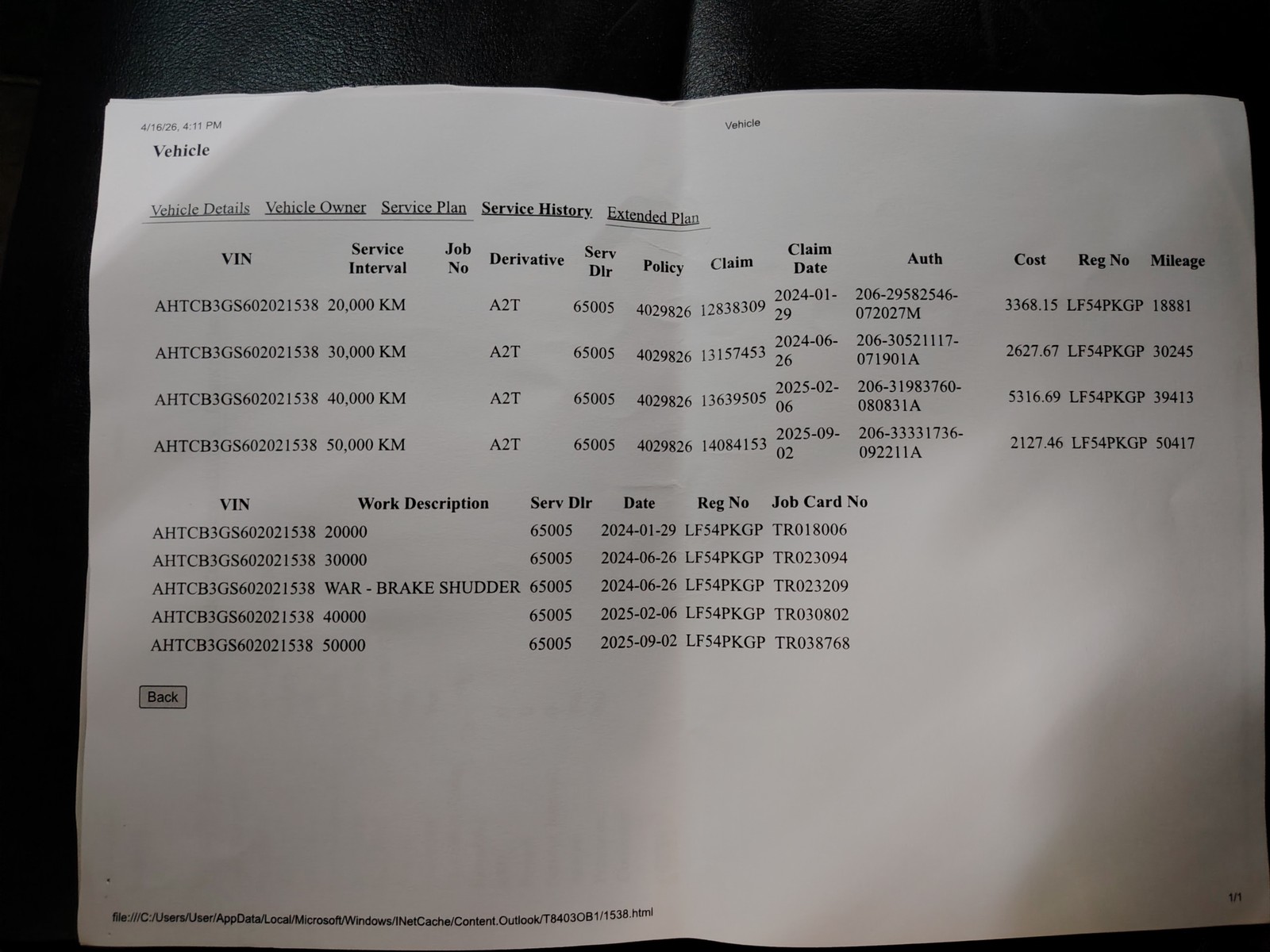 Full Service History