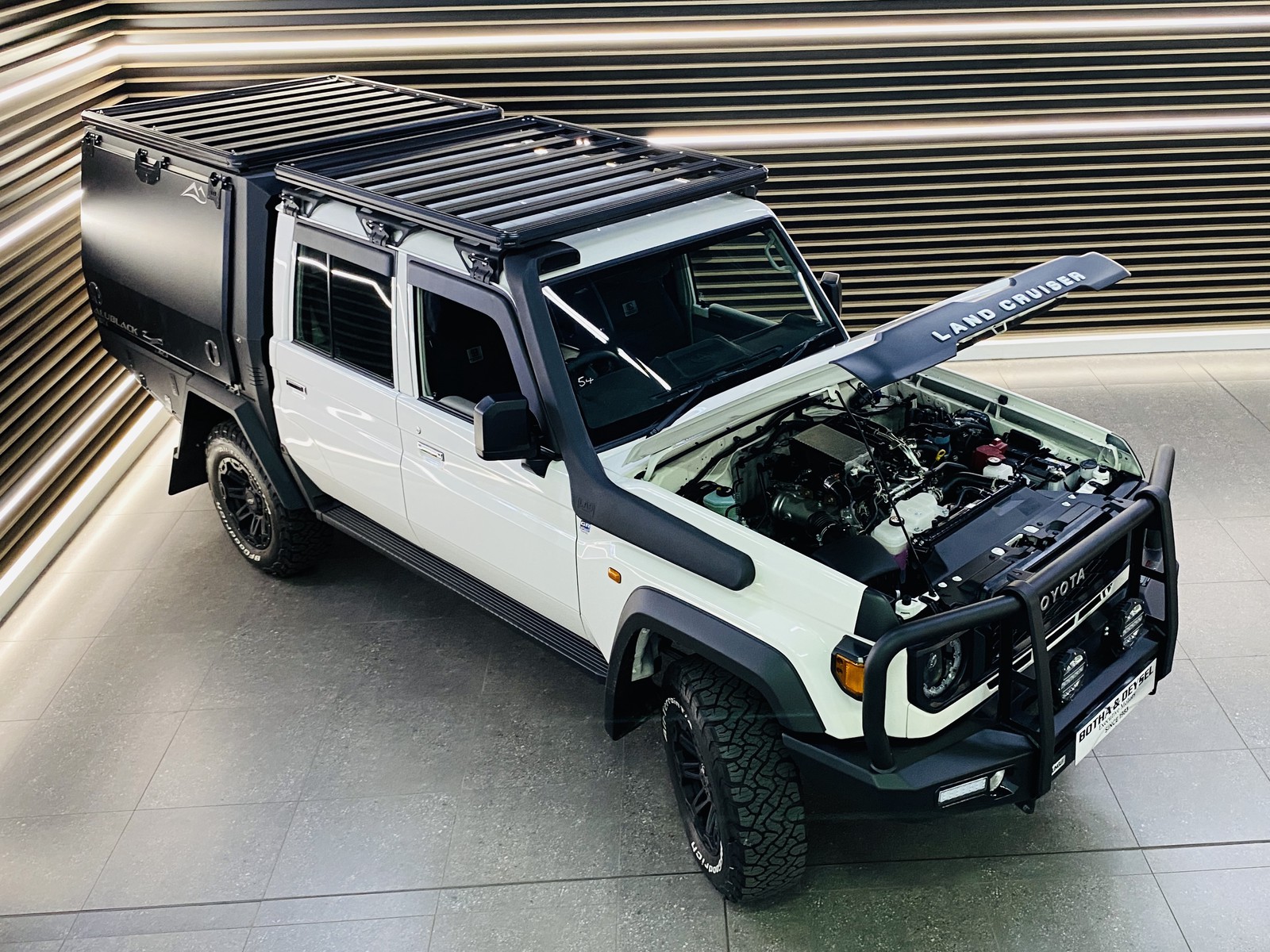This Land Cruiser 79 GD-6 A/T is the ultimate purpose-built overlander and workhorse, engineered for serious adventure and uncompromising durability. Powered by proven GD-6 performance and enhanced with a software upgrade, it delivers effortless torque with confidence wherever the road ends. The bold stance is amplified by Aussie Land Cruiser headlights, a jungle front replacement bumper, bonnet guard, LAS snorkel and a 45mm suspension lift sitting on 17" Duke rims wrapped in 5 BF Goodrich tires. Night driving is transformed with powerful 7" B2B spotlights, while the ALUBLACK removable canopy offers unmatched versatility, easily converting into a flatbed when required. At the rear, a ladder, drawer system and integrated water tank with pump make this vehicle expedition ready. Inside, comfort meets rugged practicality with Stonehill seat covers, armrests, heavy-duty moulded mats, dash cover and a D.A.G 10L console fridge. Apple CarPlay, Android Auto, Kicker sound system, steering wheel controls with cruise control and a reverse camera ensure modern convenience without compromising toughness. Weather guards complete the package. Highly spec, professionally upgraded and ready for work or adventure, this Cruiser is built to go further, last longer and hold its value. Opportunities like this are rare and won’t last.